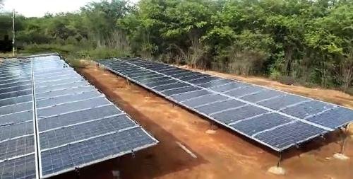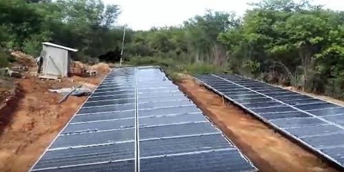 Fazenda localizada na cidade de Petrolândia, PE.Características da instalação:⦁ Inversor Apollo de 11 KW, 380V;⦁ Bomba submersa de 10 CV, 380V, trifásica;⦁ Plantio de melancias;⦁ 48 placas de 350 watt;⦁ 100 mca, vazão de 16.000 litros/hora.